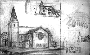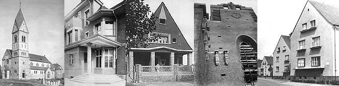 v.l.n.r.: Herz-Jesu-Kirche in Bochum-Werne, 1909-1910 (WV 24); Wohnhaus für Direktor Dr. Eugen Hegeler in