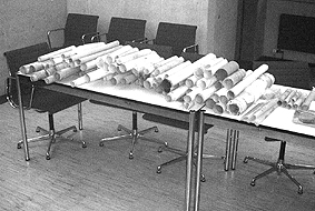 Originale und Lichtpausen, nach jahrzehntelanger Aufbewahrung in gerolltem Zustand