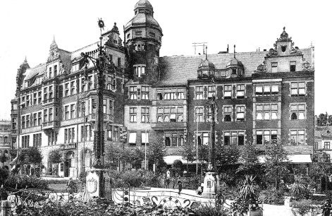 Folgen des Wettbewerbs: | Ausführung 1904-1905 nach Entwurf von Josef Franke; im Zweiten Weltkrieg zerstört![]() nordwestliche Baugruppe vom Schlossteich gesehen, zeitgenössische Ansichtskarte, Slg. Bücholdt |